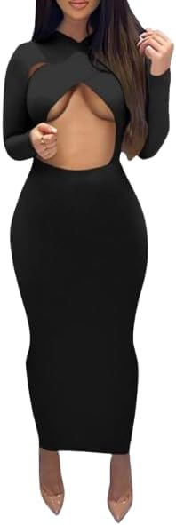 Lady Luxe Fashions The Pop Out Dress is a versatile and stylish addition to any wardrobe. With its long sleeves and elegant maxi length, it is perfect for any occasion. The criss cross cut out front adds a touch of sophistication and unique flair. Made from quality materials, this dress is sure to become a staple in your closet.